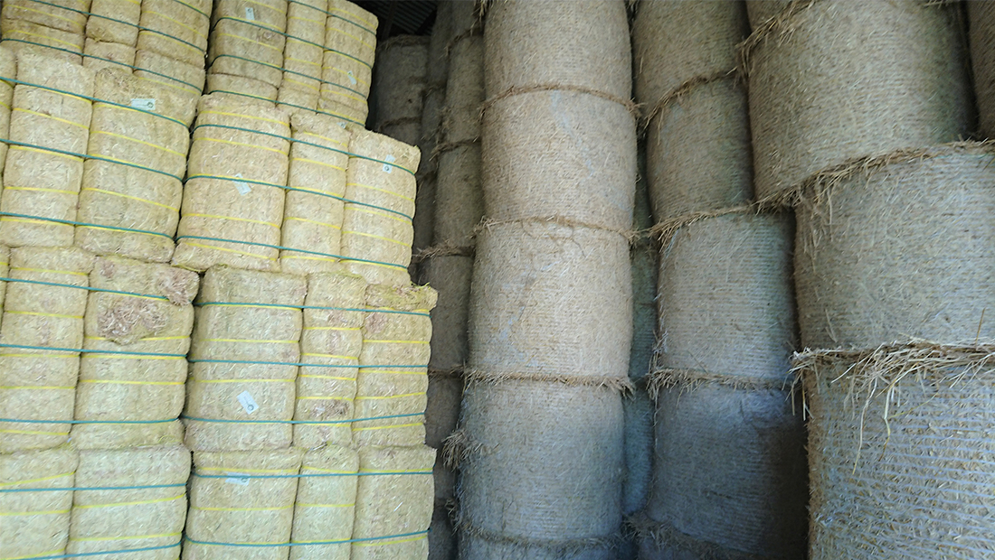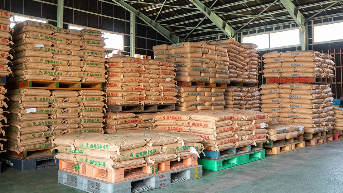 飼料部門は、 配合飼料をはじめとして、一般飼料、輸入牧草、国産稲わら、菌床用資材などの販売を行っております。